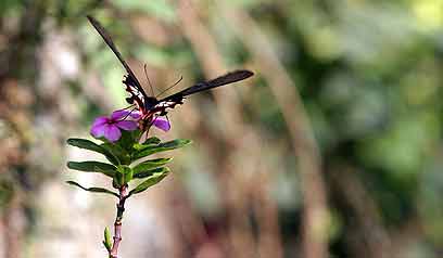 חשיפה מתאימה עם עומק שדה קטן יצר תמונה של פרפר ענק, בה הרקע מטושטש וקצות כנפי הפרפר נותנים הרגשה של תנועה. נפאל, 2004