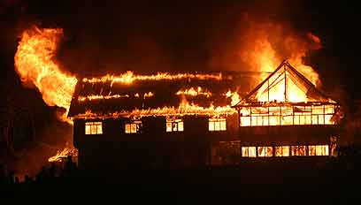 ניסוי של מספר אפשרויות חשיפה הביא להצלחה בצילום שריפה לילית בהתקפה של מורדים מאואיסטיים. נפאל, 2004