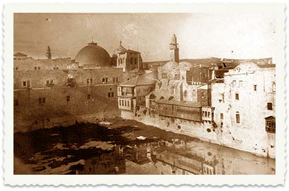 תצפית על הרובע היהודי. בתמונה נראים שני בתי הכנסת הגדולים.