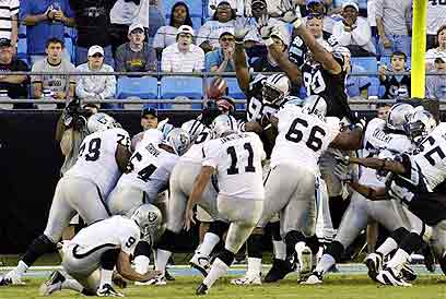 ההולדר (משמאל למטה) מכין את הכדור לבעיטה של הקיקר מאוקלנד (איי.פי)
