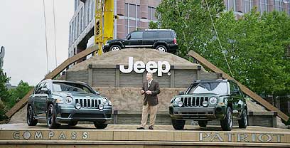 ג'יפ הנחיתה בדטריוט שתי מכוניות תצוגה: קומפאס ופטריוט. טום לה-סורדה, יושב ראש קרייזלר החדש, מספר לנו שאפשר כבר להכין את הארנקים