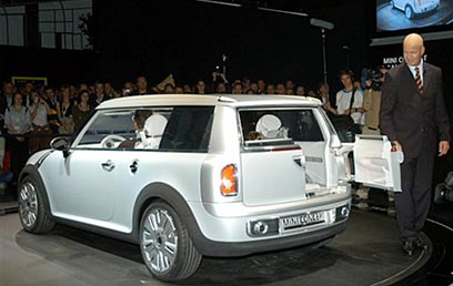 דגם התצוגה החדש, המכונה "מיני-קונספט-פרנקפורט" (במילים אחרות, אין לו שם...), מאשר למעשה את מה שכל תעשיית הרכב ידעה מזמן, ורק ב.מ.וו סרבו לאשר: לדור הבא של המיני תהיה גם גרסת סטיישן. וכמו הטרוולר של אז, מדובר במכונית בעלת מרכב מוארך, אך עדיין בעל שלוש דלתות. בעצם, יש "כמעט" ארבע דלתות, שכן הדלת האחורית נפתחת בשני חלקים מהמרכז כלפי חוץ.