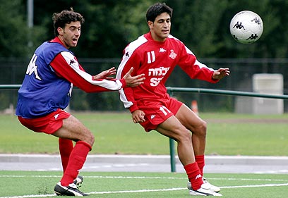 הפועל תל אביב באימון (צילום: גיל נחושתן)