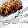 חברת האחים חדד מציעים סכיני חיתוך לחלה מכסף טהור בעלות ידיות מעוצבות בעיצובי טבעות, פסים ופרחי בר זעירים לארוחת ראש השנה ויתר ימי החג. להשיג בחנות המפעל בבני ברק ובחנויות לכלי כסף מובחרות ברחבי הארץ, במחיר מבצע של 85 שקל.