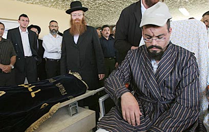 טימור אקמייב בהלוויית אשתו (צילום: צפריר אביוב)