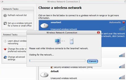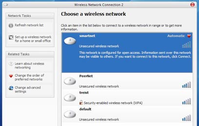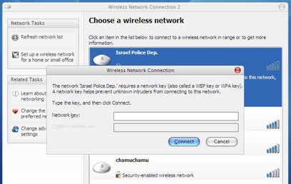 כעת יוצגו בפניכם כל הרשתות האלחוטיות הזמינות, מהן תוכלו לבחור אחת ולהתחבר אליה. כמו לבני אדם, גם לכל רשת יש שם, ומוצמד אליה גם תיאור קצר, הכולל נתוני אבטחה (חופשיה או חסומה לשימוש) ואיכות החיבור (האם היא קרובה או רחוקה למשל).