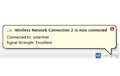 בשלב הבא, כאשר המחשב יאתר פעילות אלחוטית בסביבה, הוא יתריע בפניכם באמצעות בלונית מידע צהבהבה, שתופיע ליד מגש המערכת, על הימצאותן של רשתות אלחוטיות זמינות להתחברות. לחיצה על הבלונית תפתח את תפריט ניהול החיבורים האלחוטיים של Windows.