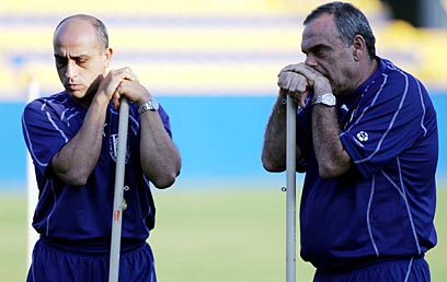 מאמן נבחרת ישראל עם האדומים (צילום: גיל נחושתן)