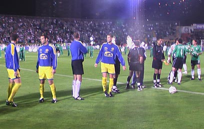 מכבי חיפה ומכבי ת"א הערב, לפני שריקת הפתיחה (צילום: אמנון פיקר)