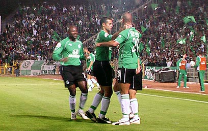 בוקולי ומכבי חיפה חוגגים יתרון מוקדם, הערב (צילום: אמנון פיקר)