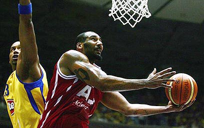 ג'וזף בלייר מול ג'יימי ארנולד. מכבי לא שומרת טוב (צילום: איי פי)
