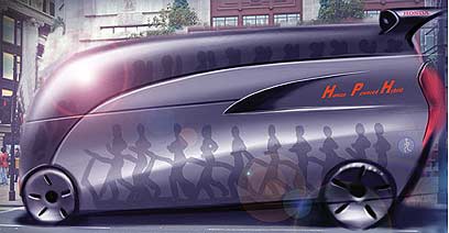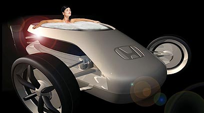 עוד מתמודדים אנשי הונדה, עם שתי הצעות שונות בתכלית. הראשונה היא אוטובוס שנע באמצעות כוח אנושי (10 אנשים שרצים על הליכון בסגנון חדר כושר. באמת). השנייה - מכונית שמשמשת גם כג'קוזי. מה שהיה נראה לנו הרבה יותר מקורי אלמלא היינו חוזים בעבר במיני XXL...