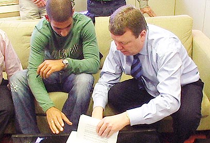 אולדריג' וקטן חותמים על החוזה (צילום: ערן קמינסקי)
