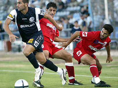 עבאס סואן מנסה לעצור את סלים טועמה (צילום: גיל נחושתן)