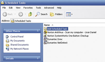 אפשר גם לתזמן משימות אחרות לרשימה. בכל מקרה, אם אתם משתמשים בתוכנת אנטי וירוס שיכולה לעדכן את עצמה באופן אוטומטי מהאינטרנט, תוכלו להשתמש באשף תיזמון המשימות להריץ עידכון אוטומטי בזמן שאתם תבחרו. כדי לפתוח את אשף תיזמון המשימות בחרו בתפריט התחל>עזרים>כלי מערכת.