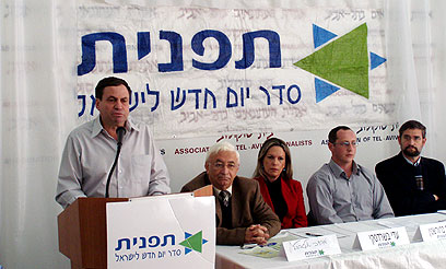 דיין וראשי מפלגתו היום במסיבת העיתונאים