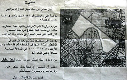 הכרוזים שהפיץ צה"ל ברשות. צילום: אי.פי