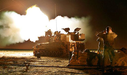 תותחי צה"ל הערב סמוך לנחל עוז. צילום: איי.פי