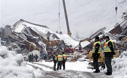 מתנדבים עם אתי חפירה וצוותי מומחים עם כלבי גישוש עסוקים בחיפושים, חרף הקור העז והשלג שממשיך לרדת כל העת. "נמשיך לחפש עד שנאתר את כל הנעדרים", אמר מפקד יחידת הכבאים האזורית, רודי צייף. הגופות שנמצאו היום הוצאו מבין ההריסות בטווח של מספר שעות; הגופה האחרונה הייתה של ילדה בת חמש.
