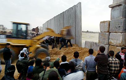 חמושים פלסטינים פרצו אחר הצהריים (יום ד') דרך מחסום אבנים בגבולה הדרומי של רצועת עזה עם מצרים באמצעות דחפורים. הרשויות במצרים מסרו שכ-300 פלסטינים הצליחו לעבור את הגבול מרצועת עזה למצרים לאחר פריצת גדר הגבול.
