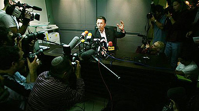 ארקדי גאידמק במסיבת העיתונאים ברמת גן (צילום: רויטרס)