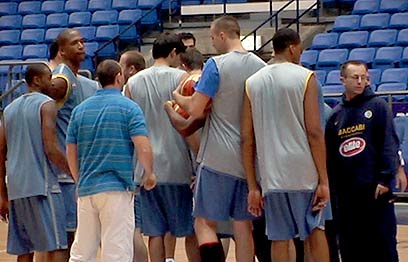 שחקני מכבי תל אביב מתכוננים לאולימפיאקוס (צילום: יועד כהן)