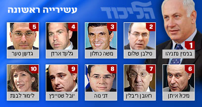 אלפי חברי מרכז הליכוד אמרו את דברם וקבעו את רשימת הליכוד לכנסת: ח"כ משה כחלון במקום השלישי אחרי נתניהו וסילבן שלום, המשוריין. ואלו יתר החברים בעשיריה הפותחת: גלעד ארדן, גדעון סער, מיכאל איתן, ראובן ריבלין, דני נוה, יובל שטייניץ ולימור לבנת. בצמרת הרשימה - הצעירים, בתחתיתה - המורדים