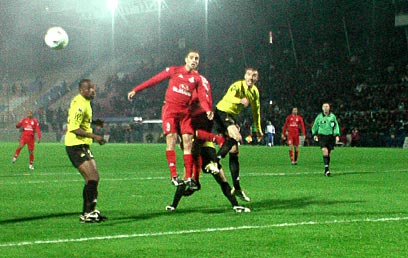 בדקה ה-6 הצליח דגו להיכנס לרחבה אבל בעיטה שלו נהדפה על ידי בן יוסף. לאט לאט החלו האדומים להשתלט על מרכז המגרש אבל לא הצליחו לסכן את שערו של קורנפיין.