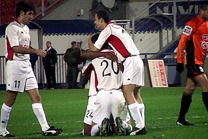 הפועל תל אביב חוגגת, היום מול בני יהודה (צילום: יועד כהן)
