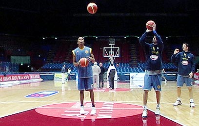 צפו בשחקני מכבי מתאמנים ומדברים במילאנו (צילום וידאו: איתי שנקמן)