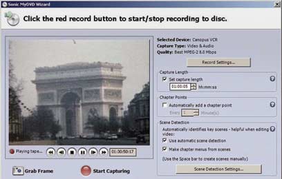 לאחר שלב ההגדרות, הפעילו את הווידאו והקליקו על כפתור Start Capturing האדום ב-MyDVD. אם הגדרתם את משך הזמן ללכידה - הכל ייעשה אוטומטית. לאחר מכן ייווצרו התפריטים וה-DVD ייצרב. גם אם תפסיקו את הלכידה תמשיך התוכנה לשלב יצירת התפריטים והצריבה.