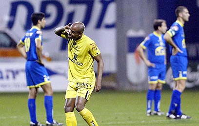 אלן מסודי חוגג, נמני וברקוביץ' מנסים לעכל (צילום: גיל נחושתן)