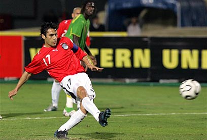 אחמד חסן כובש את השער הראשון של מצרים, הערב בקהיר (צילום: איי פי)