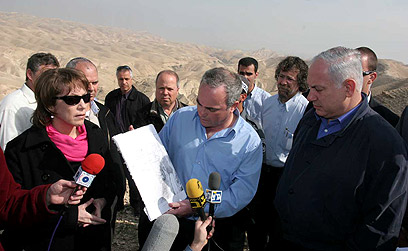 נתניהו, שטייניץ ולבנת בסיור בבקעת הירדן (צילום: גיל יוחנן)