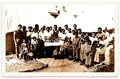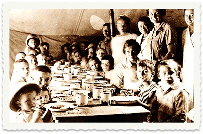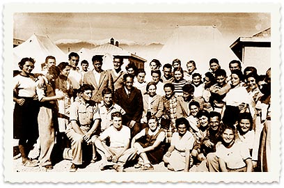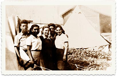ילדי טהרן בוגרים ליד אוהליהם בקיבוץ אפיקים.