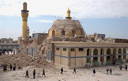 פיצוץ עז הרס הבוקר (ד') מסגד שיעי מפורסם בעיר סמארה צפונית לבגדד. גורמי משטרה אמרו שייתכן שישנם אנשים לכודים מתחת להריסות אולם מספרם לא ידוע. הפגיעה באתר הקדוש גררה הפגנות ענק ופעולות נקמה של שיעים במסגדים סוניים.