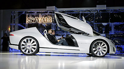 הרבה חיוכים נראו בערב המקדים לפתיחת התערוכה, שערכה סאאב למספר מצומצם של עיתונאים מכל העולם. וכמו בהפקה מתוכננת היטב, זינקה האירו X, מכונית תצוגה פוטוריסטית, היישר מבעד לקירות קרח, שהובאו לכאן - כך סאאב - ישירות מסקנדינביה. ואם אתם מחפשים כאן משהו סמלי, מצאתם אותו. הכוונה הייתה במפורש לסמל את יציאתה של סאאב ממשבר, ורנסנס למותג הייחודי.