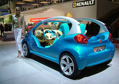 גם העירונית הקטנה אייגו, שפותחה כפרויקט משותף לטויוטה, פיז'ו וסיטרואן, הגיעה לז'נבה בבגדי תצוגה. אלא שכאן מדובר כבר בקוריוז של ממש. כפי שניתן לזהות בתמונות, מדובר במעין באגי אופנתית ללא דלתות, ועם הרבה-הרבה פוטנציאל של רוח ושמש. מסוג הדברים שנראים מצוין בתצוגה, אבל רק לעיתים רחוקות מגיעים לייצור סדרתי.