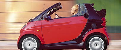 מה שמצער זה שלמרות החמידות הכללית, הסמארט - גם בגירסה פתוחת הגג המפונפנת - מותירה רושם כללי זול ומחופף מדי. הפלסטיקים, צבעוניים והכל, עושים רושם רופף וספרטני, המושבים מעט נוקשים ובלם היד מגיח מתוך חור גס בשטיח. בקיצור, ברור לך שאתה עומד לנסוע בצעצוע שמרצדס מעולם לא טרחה להיניק. מגיל אפס הוא בטח זלל רמדיה, מה שמסביר גם את הצבעוניות הזרחנית הזאת.