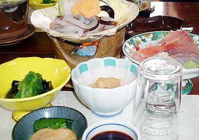 שפע של אוכל. סשימי וקדירת נאבה (צילום: איריס ז'ורלט)