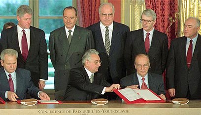 הסכם דייטון. מנהיגי העולם כופים על מילושביץ' "שלום" (צילום: איי.פי)