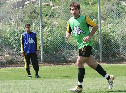 דויד אגנסו באימון בית"ר לפני המשחק בסכנין (צילום: אלי אלגרט)