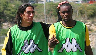מזואה אנסומבו ויואב זיו, באימון בית"ר (צילום: אלי אלגרט)