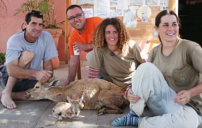 היעל הפצועה, המחלצים והגדי (צילום: גלעד לנדוי)