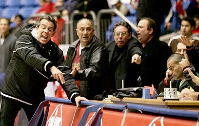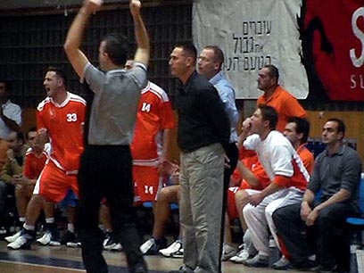 גודס והספסל של ראשל"צ. "היינו צריכים לנצח" (צילום: יועד כהן)
