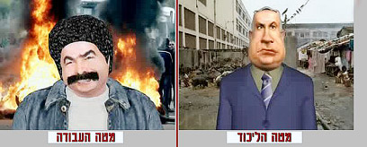 אתר הסאטירה BBP (ראשי תיבות באנגלית של ביבי ופרץ) שעלה לרשת אמש (ב') מציב את הדמויות המאוירות של מועמדי הליכוד והעבודה במסגרת טלוויזיונית מפוצלת, כאשר ברקע נראות הריסות המזכירות מקום אי שם בשטחים. אפשר להפנות לכל אחד מהשניים כל שאלה (אך מגוון התשובות מצומצם למדי).
