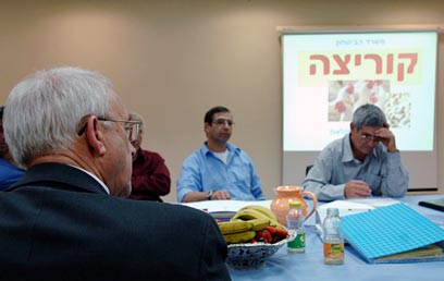 הומור ה"קוריצה" במשרד החקלאות. משמאל: בוים (צילום: אמיר כהן)