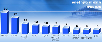 סקר ynet-סמית: קדימה 30 מנדטים, העבודה 21, ליברמן 14, הליכוד 10, הגימלאים 6