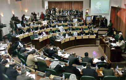 רמאללה: חברי הפרלמנט צופים בנאום של הנייה (צילום: אי פי)