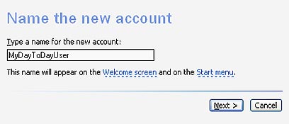 במסך ניהול המשתמשים לחצו על הקישור Create New Account. הקישור הזה יפתח לכם אשף שבשלב ראשון יבקש מכם לבחור שם משתמש (ראו צילום מסך למטה). זה המקום להפגין יצירתיות ולבחור בשם משתמש שייצג את התכונות הנסתרות שבכם, אותן תכונות שאינכם רוצים שיהיו חשופות לכלל הציבור. לאחר שבחרתם שם משתמש לחצו על המשך.
